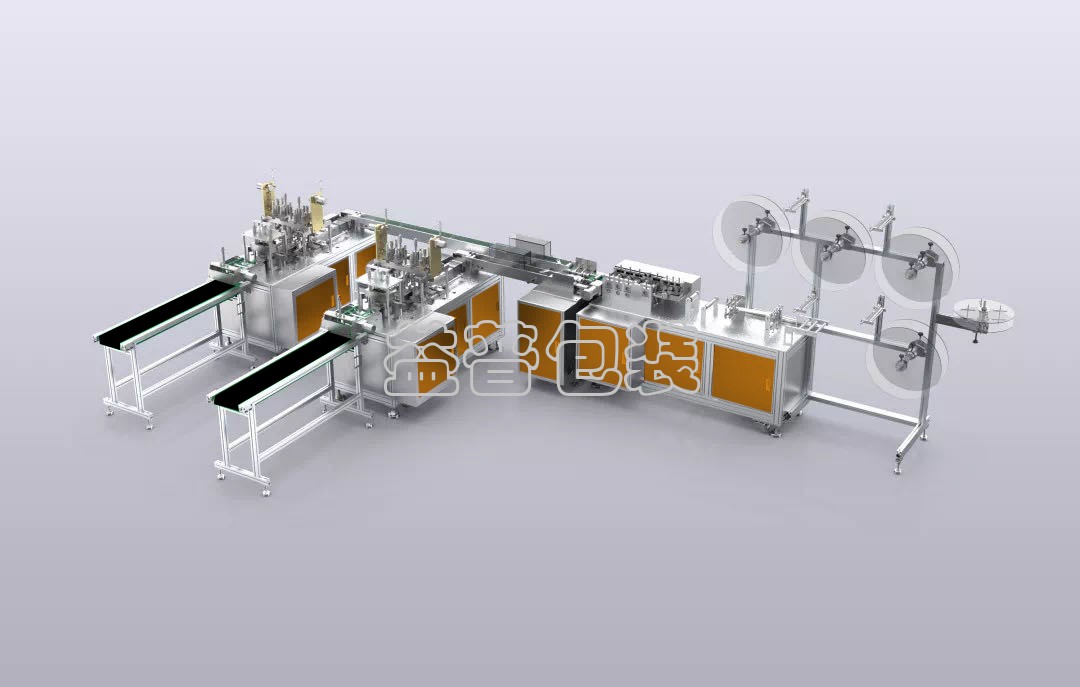 全自動醫用口罩設備,專業生產醫用三層口罩,設備由鋁合金框架不銹鋼組成,PLC控制,全自動實現口罩折邊封邊-切片-自動鼻線-分道-自動耳線等工序。整線僅需人工更換卷膜,耳線,鼻線耗材及人工收集成品。最大程度的實現口罩的自動化生產 。